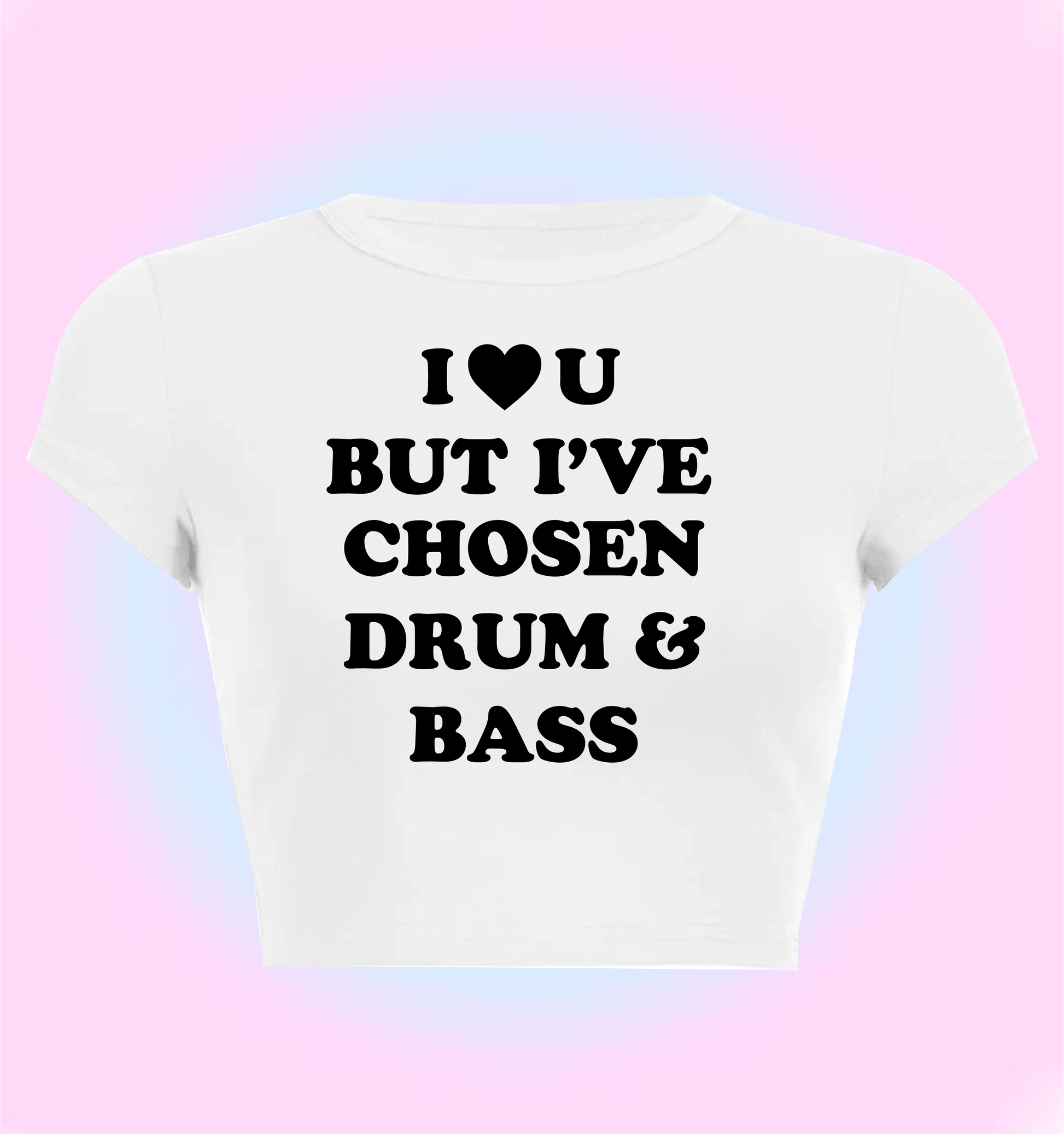 "I love you but I've chosen Drum & Bass" cropped y2k baby tee
